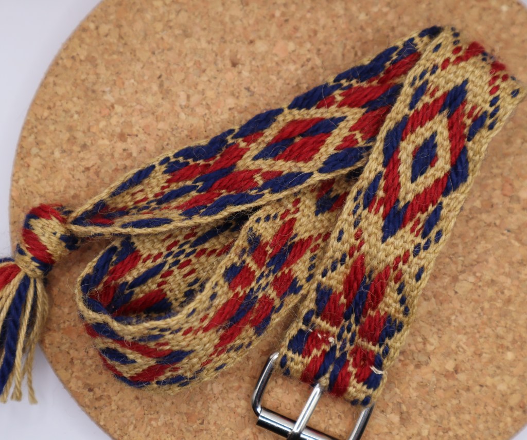 The garters were completed with Baltic weaving, using wool of different thicknesses. Silver buckles are modern made; I failed to find anything looking more period in the store around me.