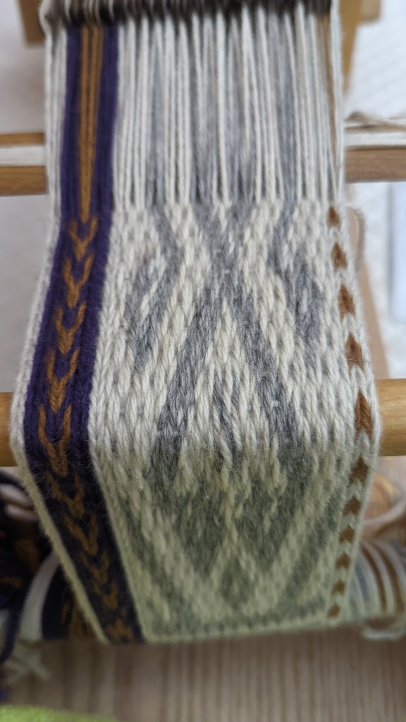 As you can see above, the first setup was on the heddle loom. You see, I just received it, and I could not resist trying it out. In addition, the design came out pretty broad, and I decided it was a proper solution.