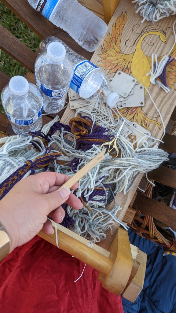 All the baltic weaving I perform on an inkle loom. I have a decent size baby I use all the time. However, even this loom was too narrow. The threads were always falling off during the reset, and the problem was picking up the good threads when needed. Usually, the patterns for baltic weaving are based on math. Well, mine was artistic. And at this point, I hated it. I had elements consisting of 2 threads instead of 3. Even reworking the design did not help.