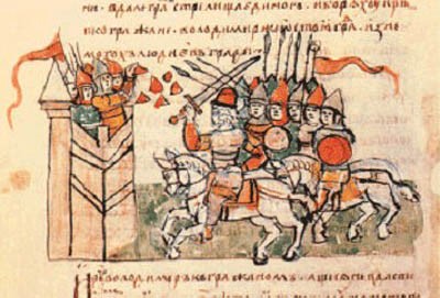 Чрьленъ стягъ, бѣла хорюговь, чрьлена чолка, сребрено стружіе — храброму Святьславличу! (“Blood Red Banner, white War Flag, attached to the silver spear for Brave Svyatoslavovich!” The Tale of Igor’s Campaign).