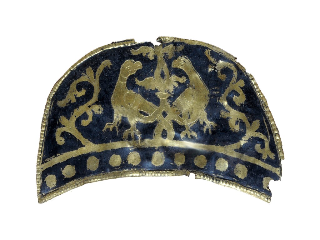 Fragments of the fabric headwear with gold embroidery, approx. XII-XIII century.