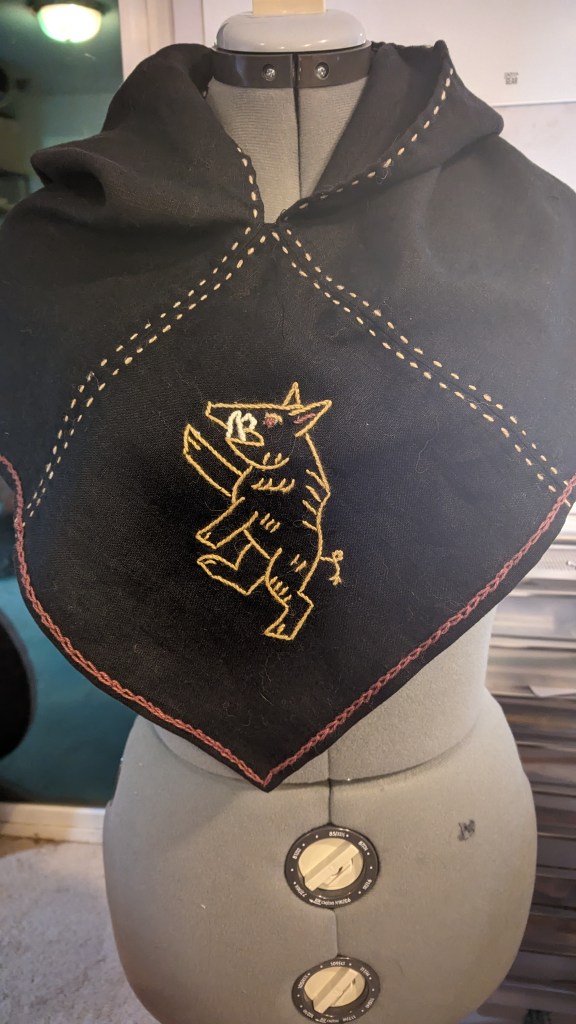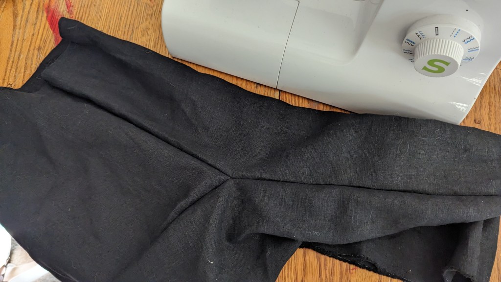 Both times the hood was requested quickly, so I used the machine to sew all pieces together. I left a 0.75-inch seam allowance to fold and hem the edges.
