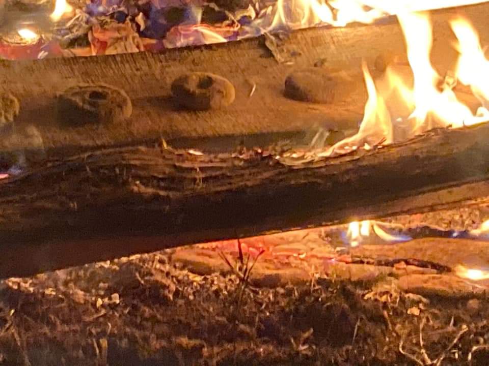 Later in the night, I placed the bagels in the hot coals and left them to cool with the fire going down.