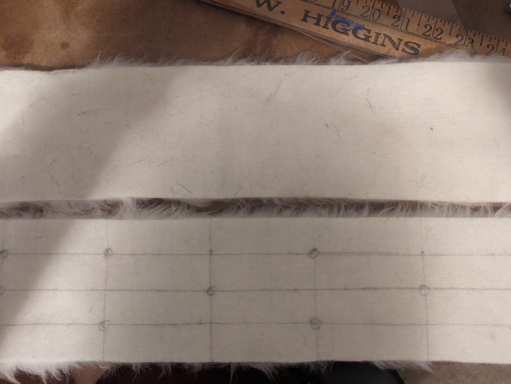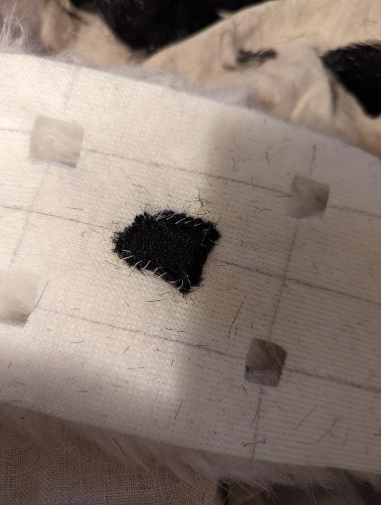 After that, I marked the white fur like the matrix shown above. The dots are the centers of 1*1 inch squares I cut out.