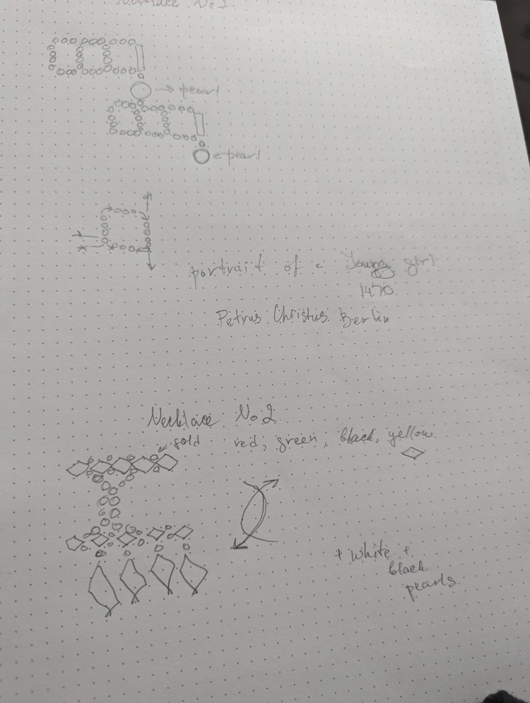 I examined the portrait as closely as possible and drafted the exact schema of the necklace and the pattern.