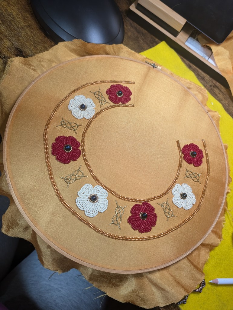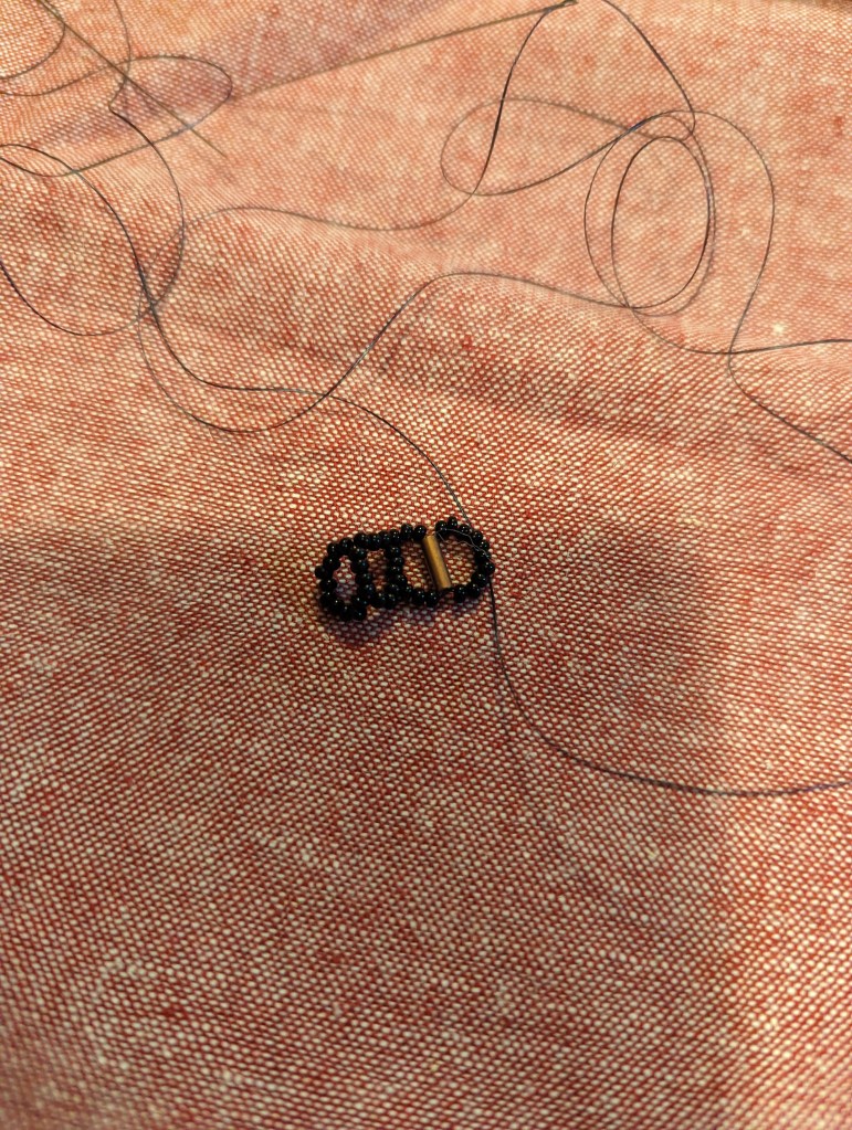 Firstly, I did the bottom and top outline, imitating the design and what is called the Ndebele technique in the beading world (more about this one—link).