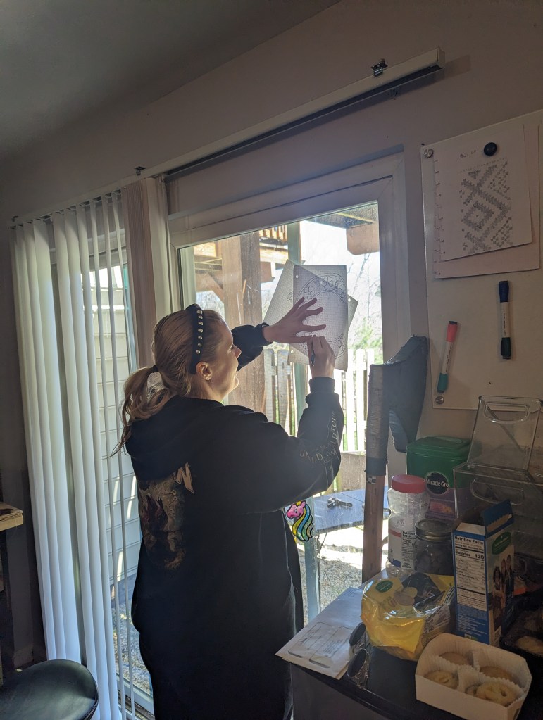 This one I had to improvise with. I had a slight idea of what I wanted to make, but I have 0 sketching skills. So I called up my student and a friend, Lady Zofia, and she graciously agreed to make me a base which I will use for embroidery.